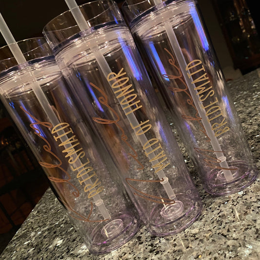 Bridal Party gift - personalized 16oz acrylic skinny tumber - Bridesmaid, Maid of Honor, Wedding Party