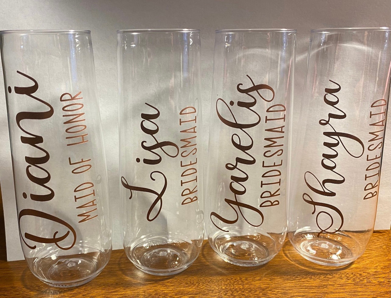 Bridal Party gift - personalized 9oz Plastic Champagne Flute - Bridesmaid, Maid of Honor, Wedding Party, Birthday, Events, ect.